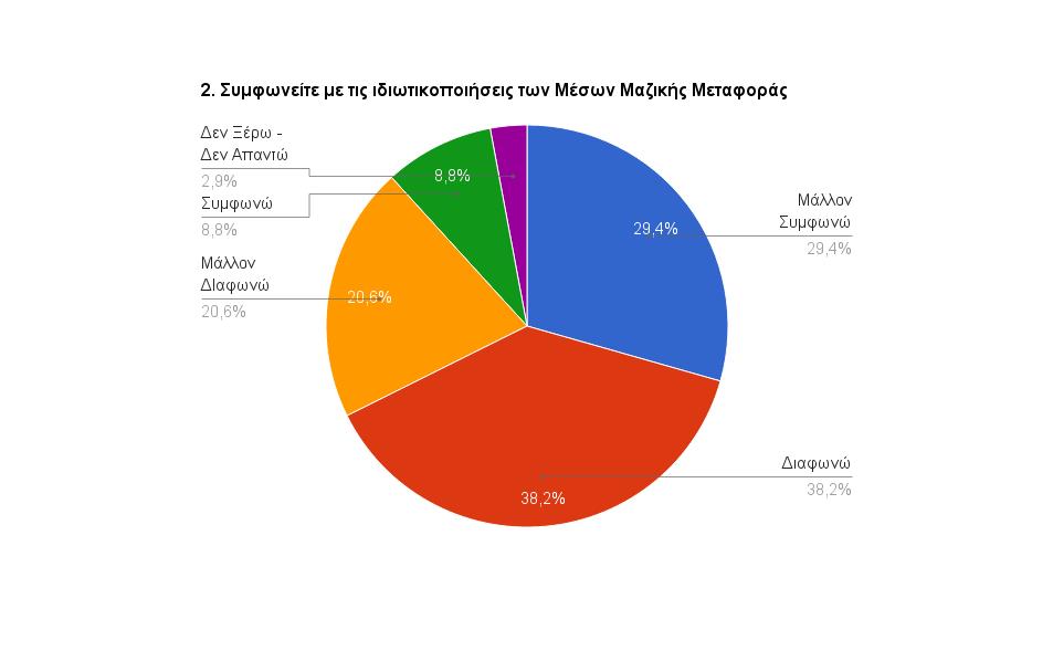 Κατά συντριπτική πλειοψηφία οι ερωτηθέντες απέρριψαν τις πολιτικές ιδιωτικοποίησης του στενού και του ευρύτερου δημοσίου τομέα καθώς 2 στους 3 ήταν αρνητικοί στις ιδιωτικοποιήσεις των εταιριών ύδρευσης και ηλεκτρισμού ενώ 6 στους 10 ήταν αρνητικοί ακόμη και στην πώληση των αστικών συγκοινωνιών και των Μέσων Μαζικής Μεταφοράς δείχνοντας να συμφωνούν με την πρόεδρο του ΠΑΣΟΚ που τάχθηκε υπέρ του δημόσιου χαρακτήρα των αστικών συγκοινωνιών. Όσο όμως απομακρυνόμαστε από τον σκληρό πυρήνα του δημοσίου παρατηρείται σταδιακά η αποδοχή των ιδιωτικοποιήσεων καθώς 1 στους 2 αποδέχεται την ιδιωτικοποίηση των περιφερειακών αεροδρομίων. Αξίζει να σημειωθεί ότι η μεγάλη πλειοψηφία όσων τάχθηκαν με μεγαλύτερη ευκολία υπέρ των ιδιωτικοποιήσεων είχε νωρίτερα κατατάξει τον εαυτό του στον τοπό-ιδεολογικό χάρτη στο χώρο από το κέντρο έως την κεντροδεξιά.